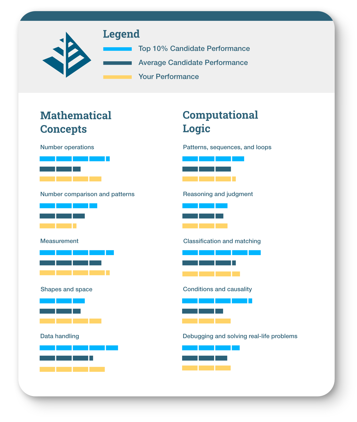 Results are based on comparing each participant’s total score with peers in the same division and are reported across six tiers.